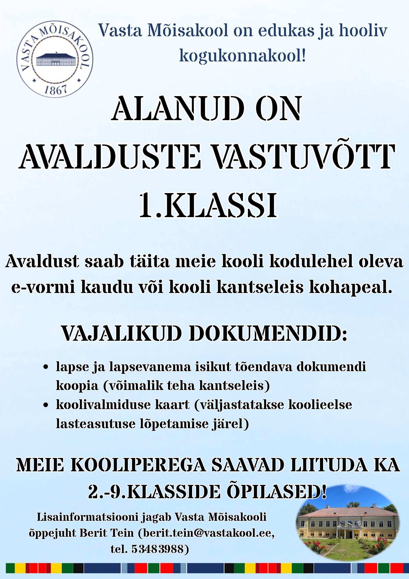 Koolivormi näidistoodetega on võimalik tutvuda koolimajas! Täpsemat infot jagab huvijuht (tel. 5212524).